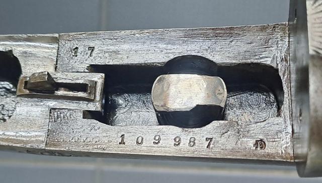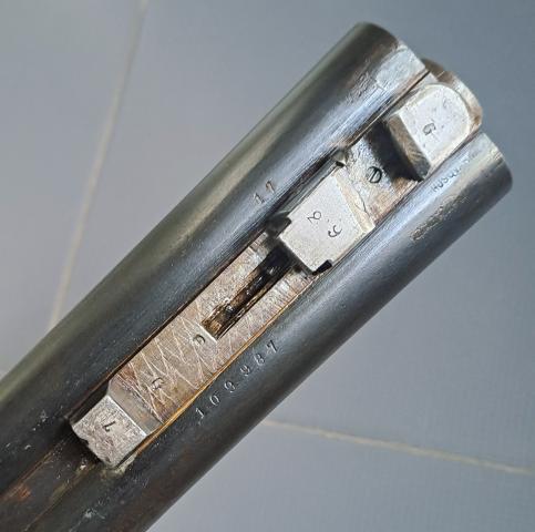 Het geweer is in nette, gebruikte staat. De sloten spannen goed op en hij sluit mooi strak. De rechter loop is een gladde loop in kaliber 16, deze is nog mooi glad met slechts een paar minimale spikkeltjes aan pitting. De linker loop is een getrokken loop in het kaliber 9,3x57R met goede trekken en velden met slechts wat lichte pitting. De kolf is ooit gerepareerd ter hoogte van de sloten, maar je moet goed kijken om het te zien en de kolf voelt gewoon stevig aan; niet heel storend dus maar wel zo netjes om gewoon even te vermelden.
