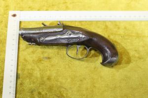Een vuursteen zakpistool, een net klein vuursteen pistool. Kan verder geen maker vinden, Hij functioneert.