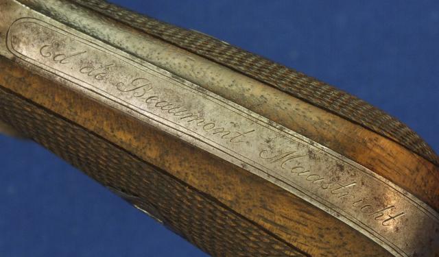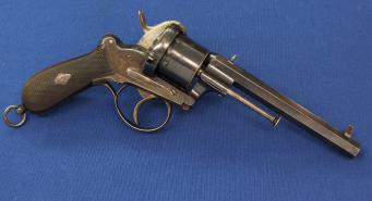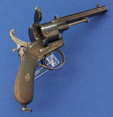 Een hele mooie Lefaucheux Patent 6 schots 12mm pinvuur revolver gemaakt door Francotte Luik voor Ed. de Beaumont Maastricht. Nog zeer veel originele finish.