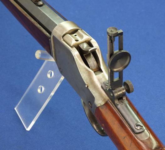 Een hele mooie Winchester Model 1885 High Wall Single shot Rifle in kaliber 32-40 met 30 inch loop. 118cm lang. Nog zeer veel originele finish aanwezig.