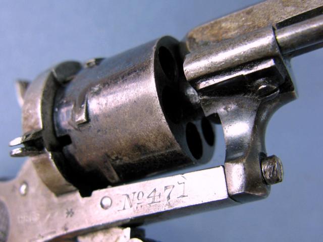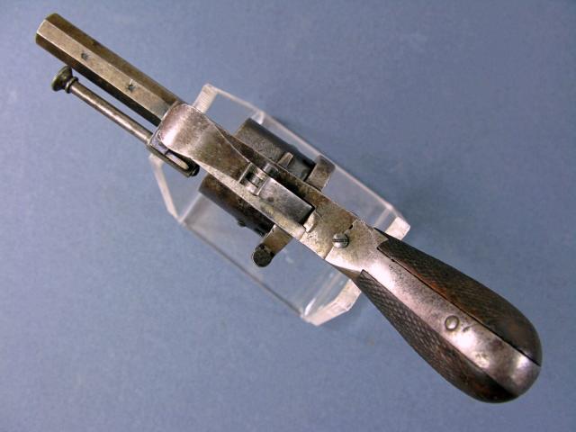 Mooi, origineel, klein 5 mm 6 schots penvuur revolver in zeer goede staat. Geblauwde loop en cilinder waarvan op de cilinder nog de meeste blauwing aanwezig is. Belgische keurmerken op cilinder en loop. Op frame genummerd No 471 Hege. Goed werkend mechanisme in zowel sa als da. Notenhouten checkered greepjes.