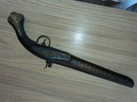 Te koop Turks Arabisch pistool met koper inleg ,19e eeuws.