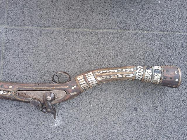 Turks Arabisch vuursteen geweer met koper en ivoor? Inleg