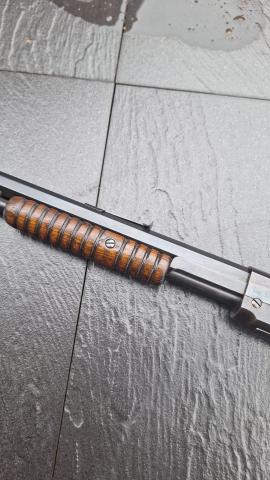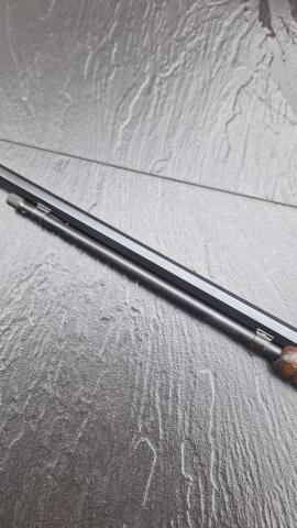 Dit geweer is in kaliber .22 short. Wapen is ooit vakkundig aangepakt en opnieuw geblauwd de blauwing is schitterend en komt op de foto,s niet tot zijn recht. (Het is echt geen hobby bob koudblauw maar echt heet geblauwd en vakkundig de loop patenten etc 100% zichtbaar) Houtwerk is schitterend en origineel en nooit opgeschuurd zonder butsen of deuken. Loop van binnen is 10/10 en niet uitgeschoten. Slamfire safety is 100% werkend,dit zorgt ervoor dat de hamer word los gelaten als de afsluiter bijna gesloten is. Vaste prijs dit schitterende exemplaar is 1950€ Bij interesse bellen/appen naar 0650603987. Aub geen berichten via de site versturen deze komen soms niet aan. Mvg Ben |