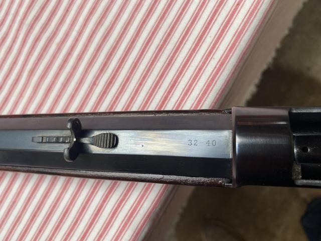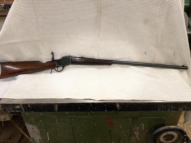 VRIJGESTELD ZWARTKRUIT geweer (volgens artikel 18) Puntgave en mooie zonder beschadigingen Winchester High Wall Single shot. Model 1885, kaliber 32-40, totale lengte 1.17 m, gehele geweer in origineel zwart/donkerblauw. Prachtige trekken en velden in de loop