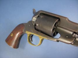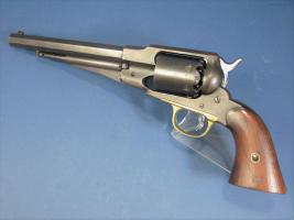 Antieke Remington New Model Army single action 6 shot kaliber .44 percussie revolver in zeer goede staat. Zichtbaar loopadres in 3 regels. Voorzien van diverse inspectormarks. Zeer strak werkend mechanisme zonder enige speling. Schone cilinder en zeer mooie schone 8 inch loop met diepe trekken en velden. Schoorsteentjes zijn open en schoon en allen demontabel. Notenhouten greepjes in zeer mooie staat met een inspecteurs stempel op de linker greep.