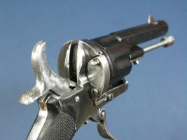 Mooi 7 mm 6 schots penvuur revolver in zeer goede staat. Gemerkt op de loop U met ster en op cilinder is het ELG keurmerk aanwezig. Geblauwde loop en fluted cilinder. Goed strak werkend mechanisme in zowel sa als da.