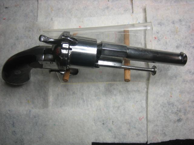 Het is gemaakt in augustus 1861 in een partij van 5000 met korte loop # LF 22947, info uit boek "Eugéne Gabriel Lefaucheux Nineteenth-Century Arms Manufacturer in Paris and Liége" .