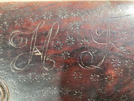 De betreffende letters zoude kunnen zijn van Henry F. Strohecker, een prominente amerikaanse handelaar in Charlston South Carolina die tijdens de amerikaanse burgeroorlog periode jachtgeweren 1860/1861 ( double barrel shotguns) imorteerde en met deze letters markeerde.